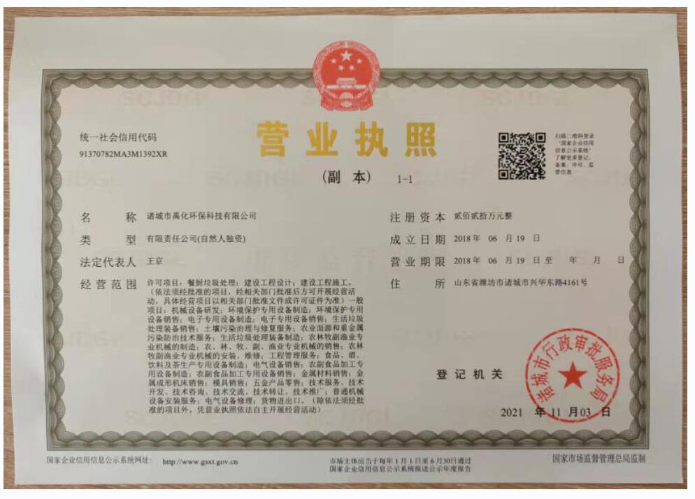 诸城市禹化环??萍加邢薰敬邮滦笄菸藓碜氨?、污水处理设备、畜禽粪污处理装备无害化处理设备等环保设备等专业研发制造,历经几年的发展,现已成为集技术研发、工艺设计、产品制造、安装培训为一体的现代化机械制造工业企业。公司坐落于沿海开放城市并有“中国龙城舜帝故里”之称的诸城市,东邻海滨名城青岛,南毗新兴港口城市日照,交通便利,地理位置优越。公司坚持以诚信谋发展的理念,以“精湛的工艺技术、精良的设备品质、精细的售后服务”,赢得了广大用户的认可和赞誉,产品销售遍布全国各地,并远销东南亚、东亚、南美洲、中东等国际市场。